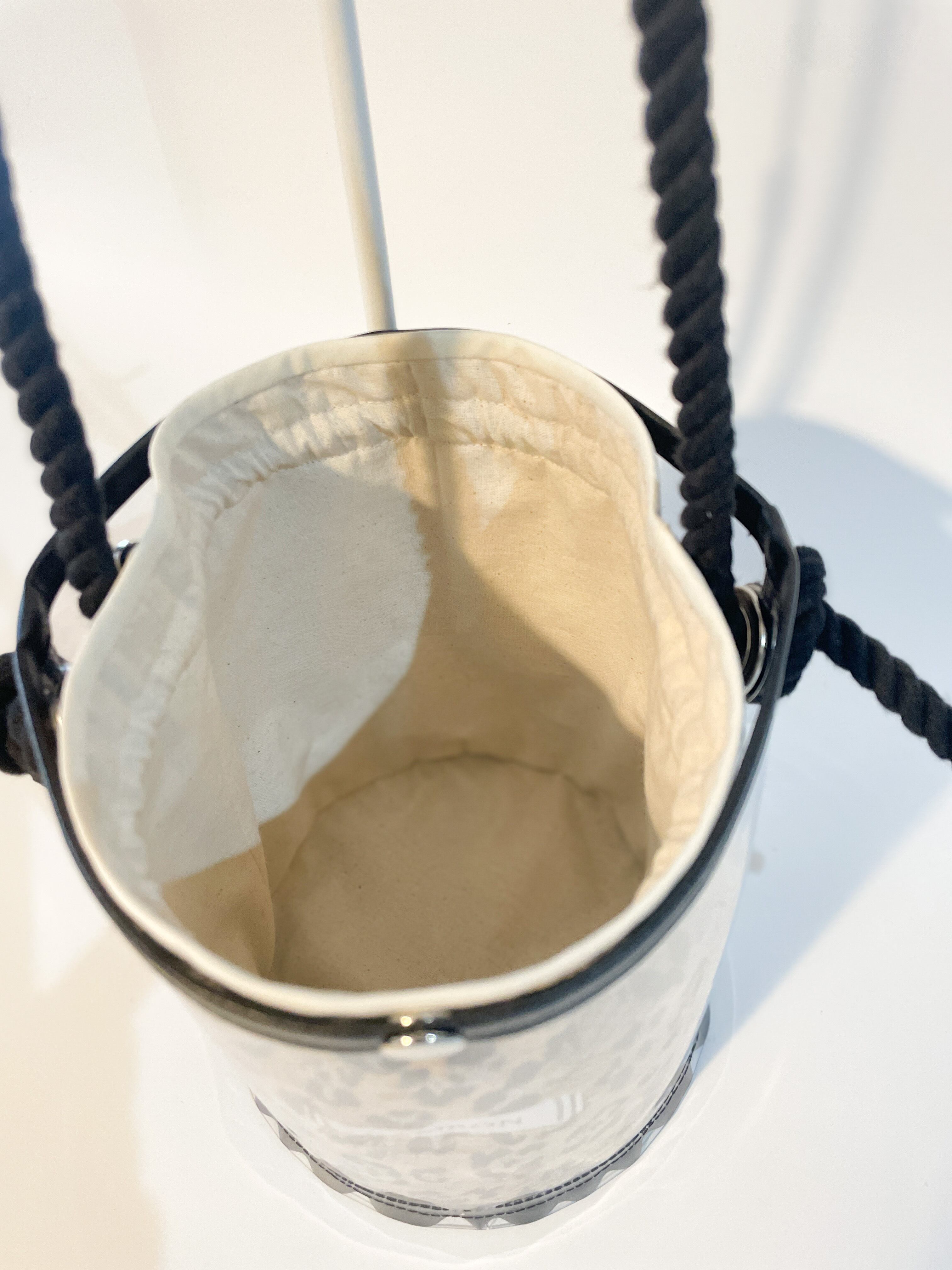 口を開けるとクリアバッグにピッタリ収まるバケツ型になります。