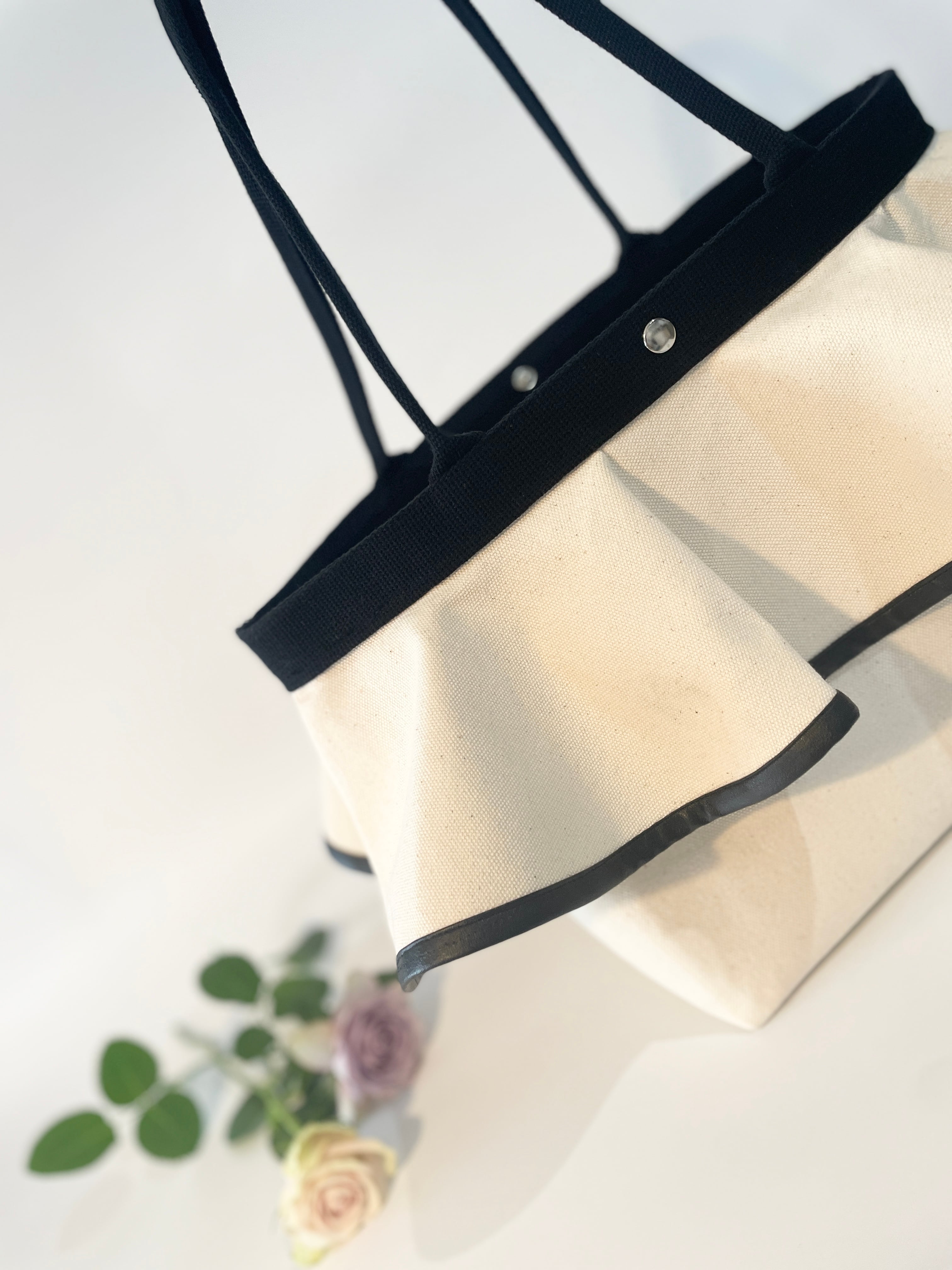 存在感、収納共にたっぷりな大きめフリルのトートバッグをつくりました♡