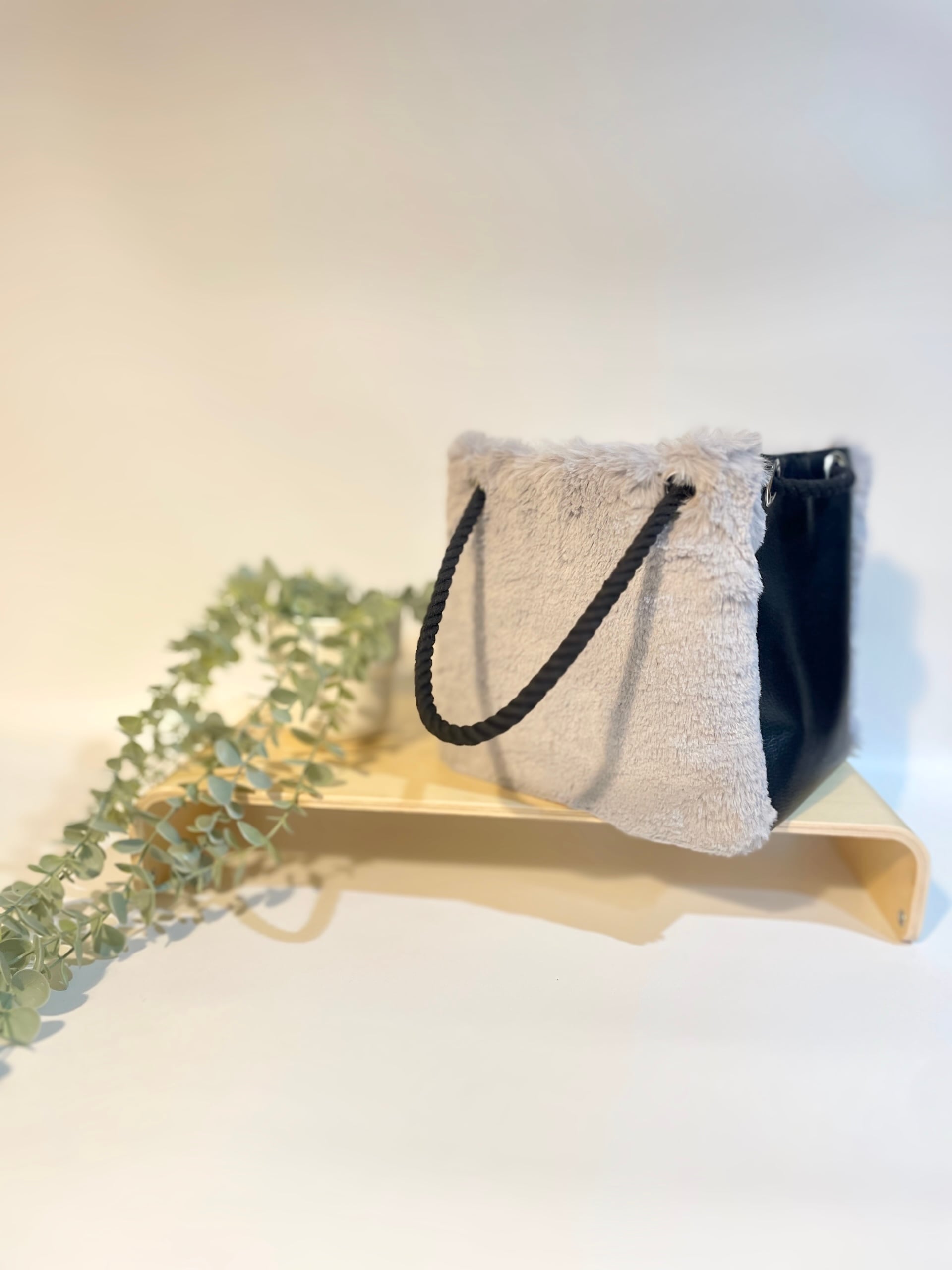 ✔︎質感、素材を拘り抜いたエコレザーと手触りのよい短毛ファーをシックな配色で仕上げしました。