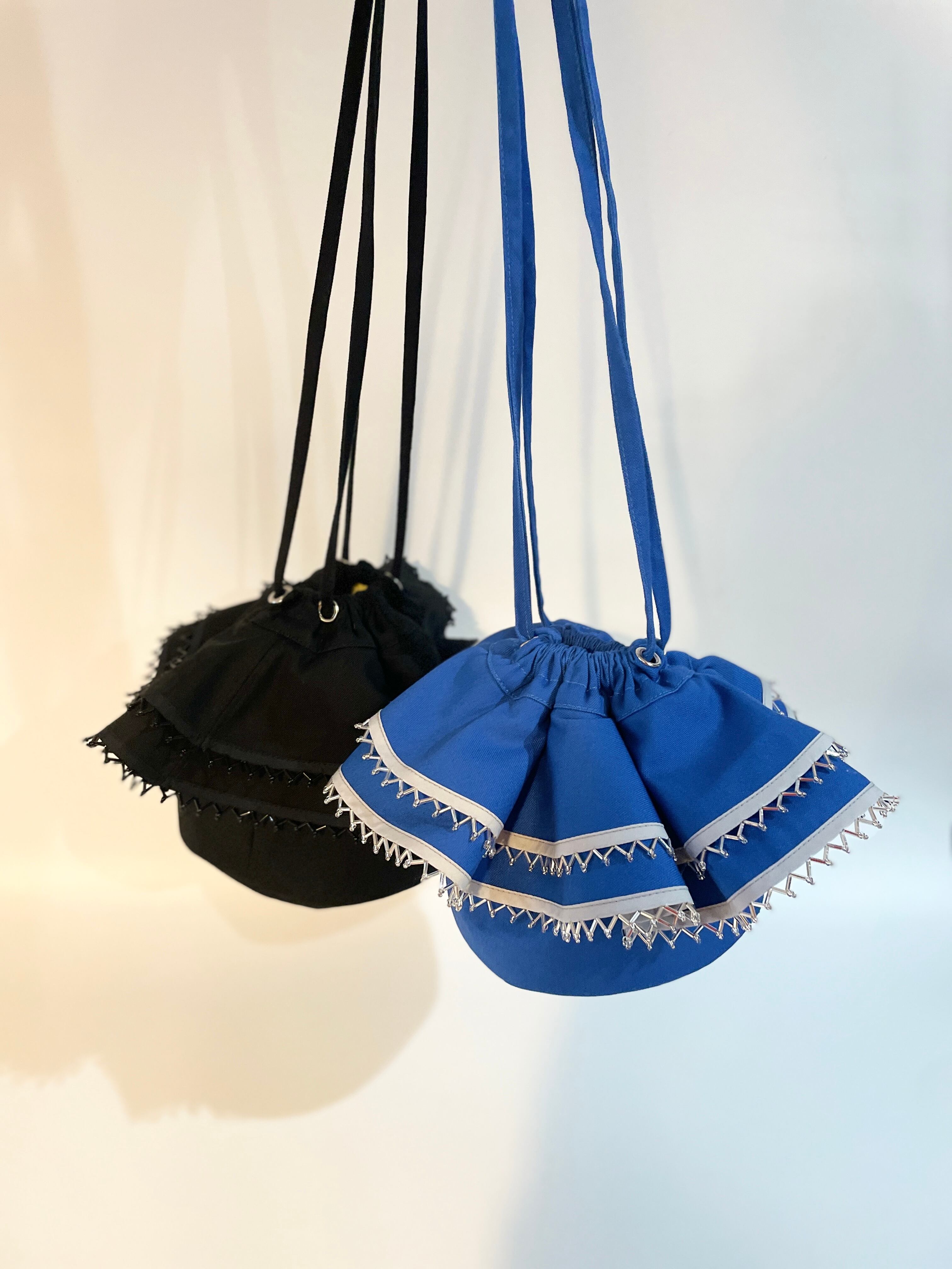 日本製綿生地を使用しており、フリル付きのデザイン性と軽くて意外と入る(長財布も)機能性を兼ね備えた巾着バッグ。軽やかな春夏のコーディネートのワンポイントで活躍すること間違いなしの一押しアイテムです。