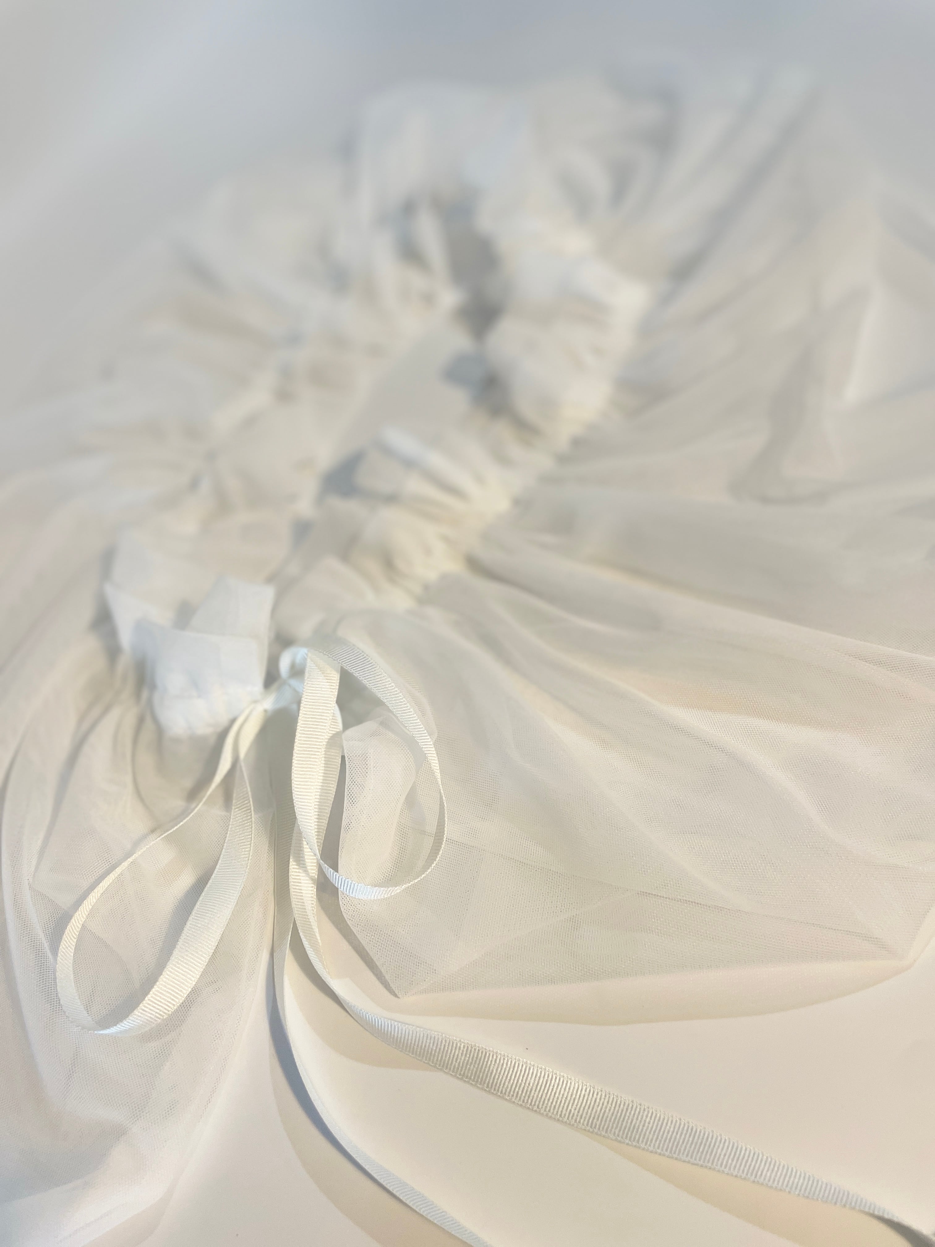 サッシュベルトとしてクロス掛けや、パンツやスカートの上からレイヤードするだけでスタイリングが華やかになるチュールをつくりました